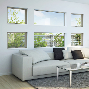 スクエア、スリット、丸型など、豊富な形をラインアップしたデザイン窓です。