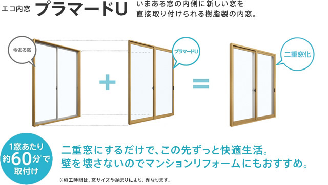 いまある窓の内側に新しい窓を取付けて二重窓に。